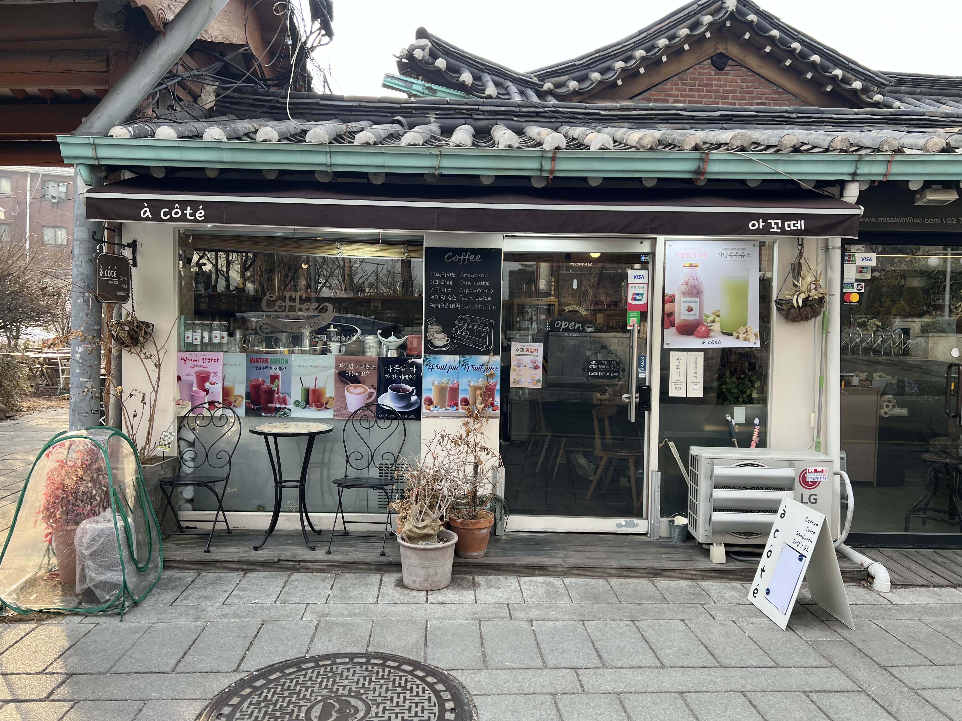 ๋ฌธ ๋ฐ๋ก ์์ชฝ์ ํผ์ ๋จน์ ์ ์๋ ํ ์ด๋ธ์ด ์๊ตฌ์.