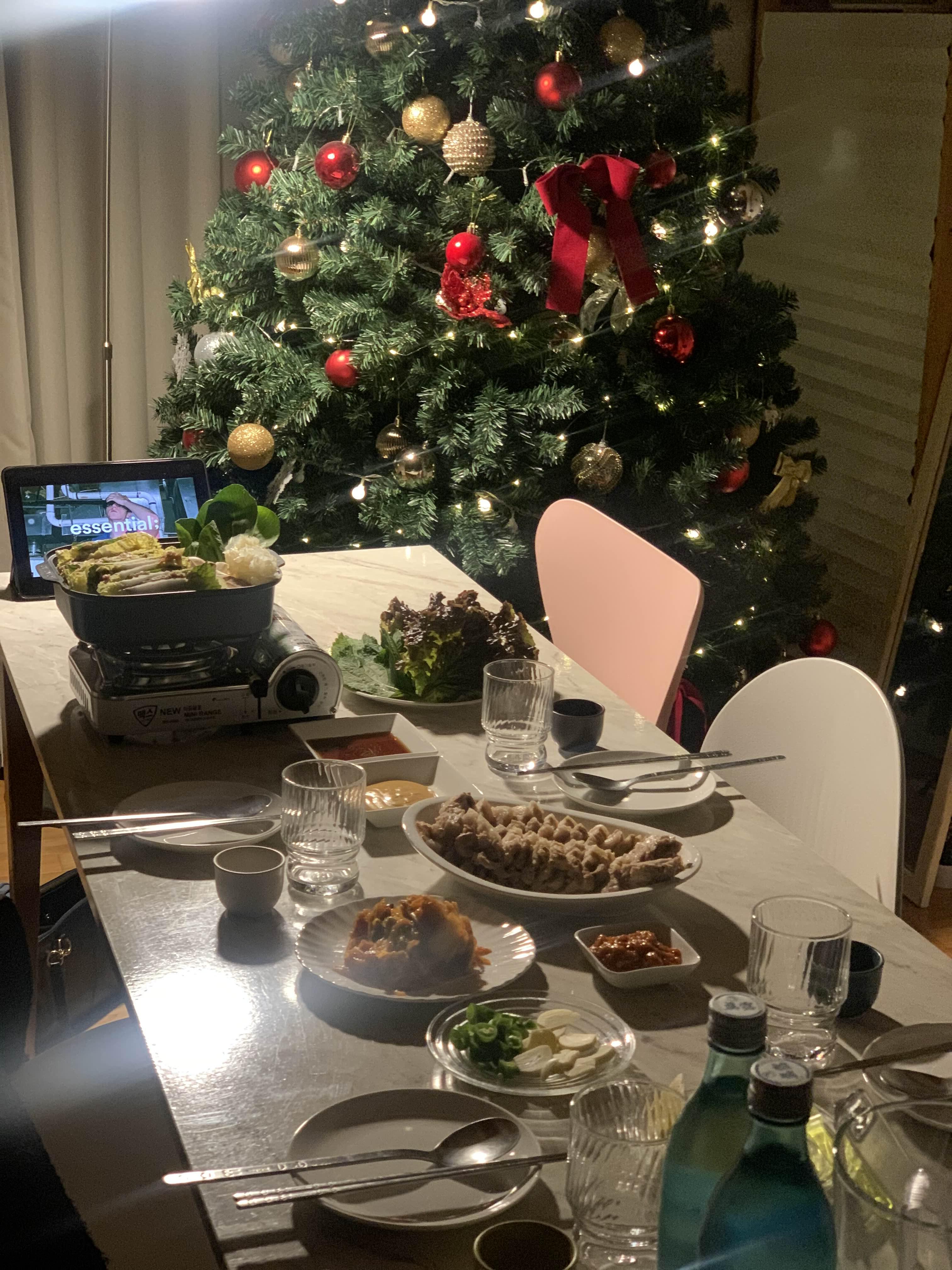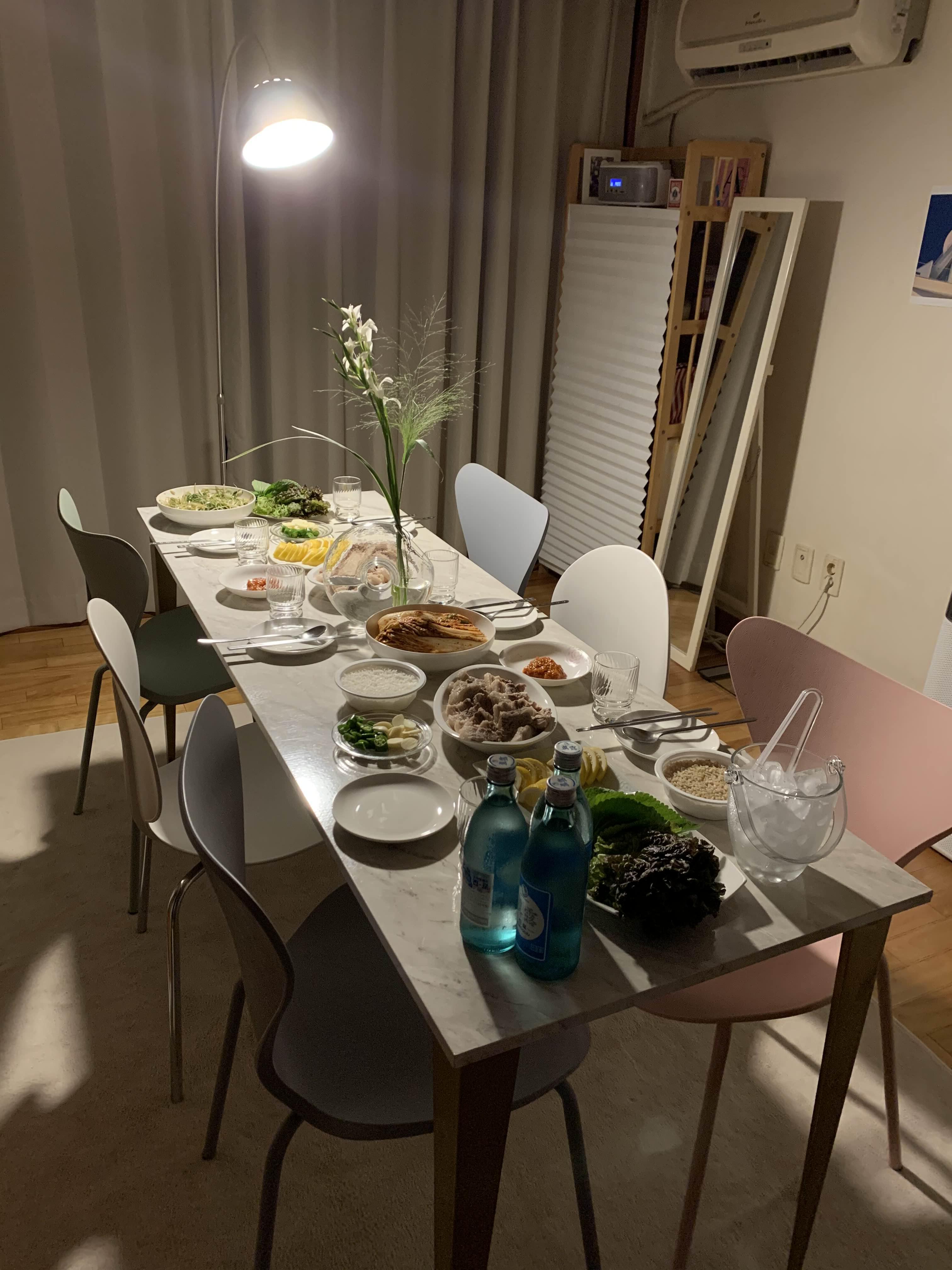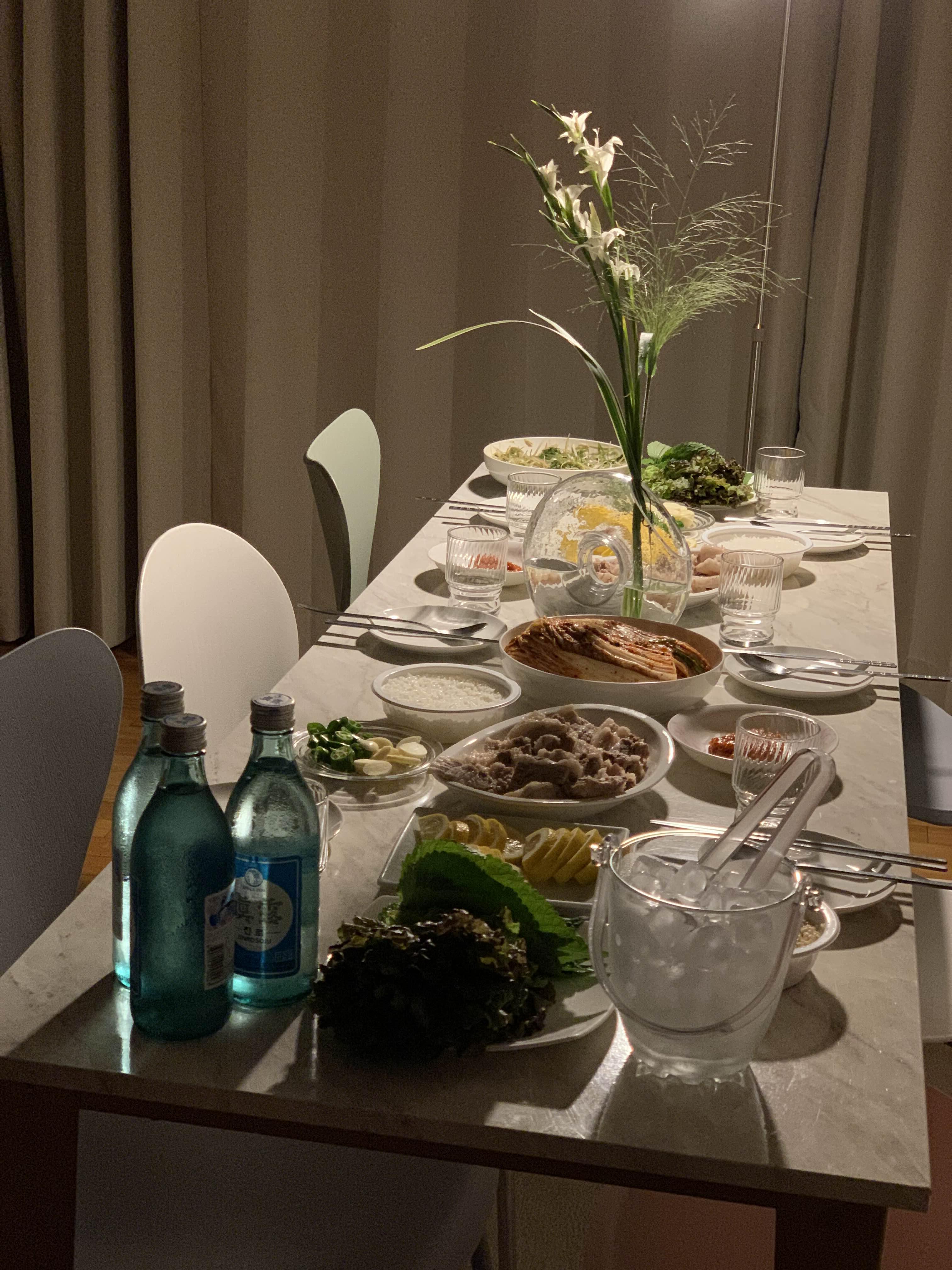 ํ ์ด๋ธ์ ์ธํ ํ๊ณ , ์น๊ตฌ๋ค์ ์ฒ์ ์ด๋ํ ๋ .