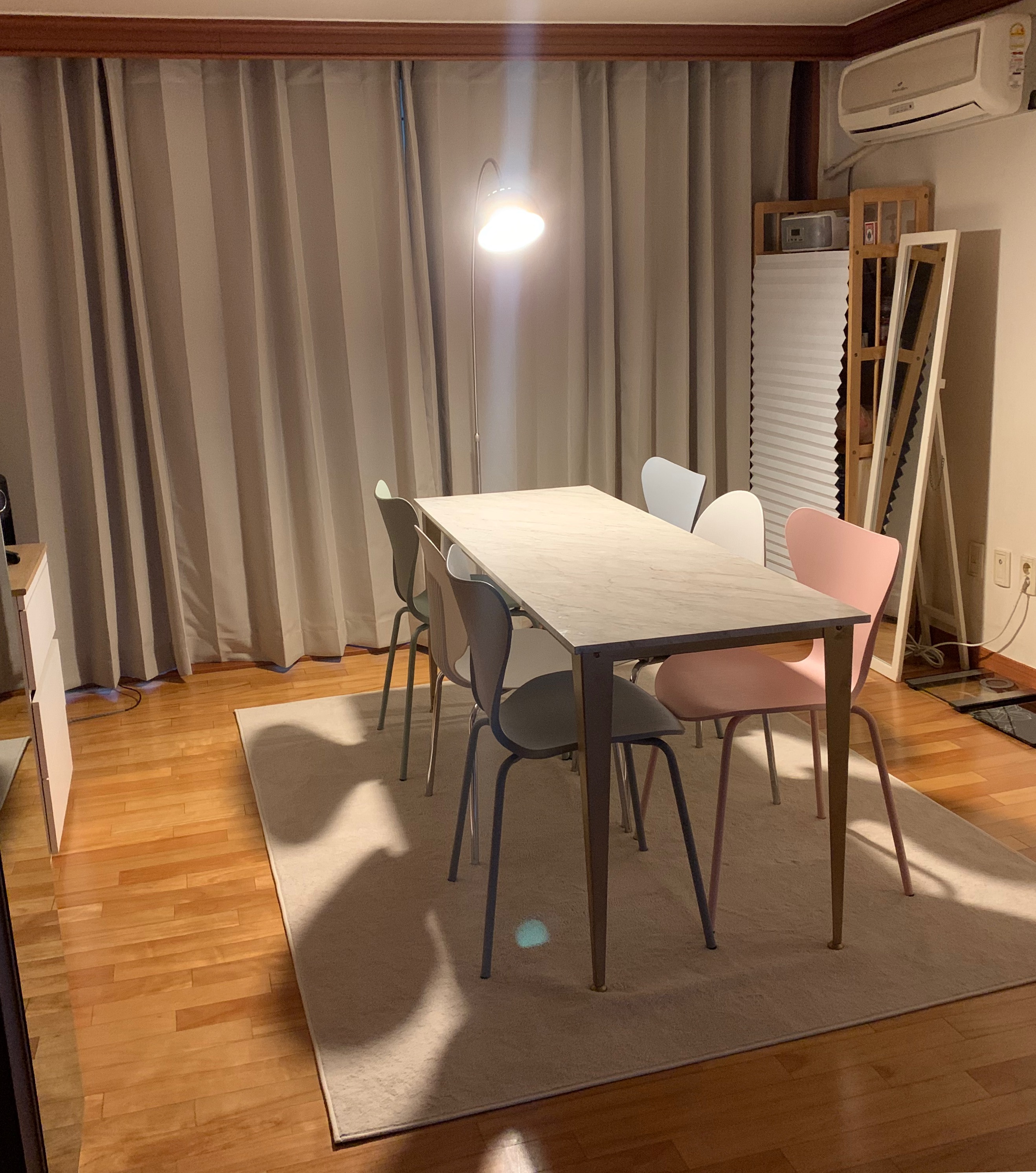 6์ธ์ฉ ํ ์ด๋ธ๊ณผ ์์๋ฅผ ๊ตฌ๋งคํ์๋ค.